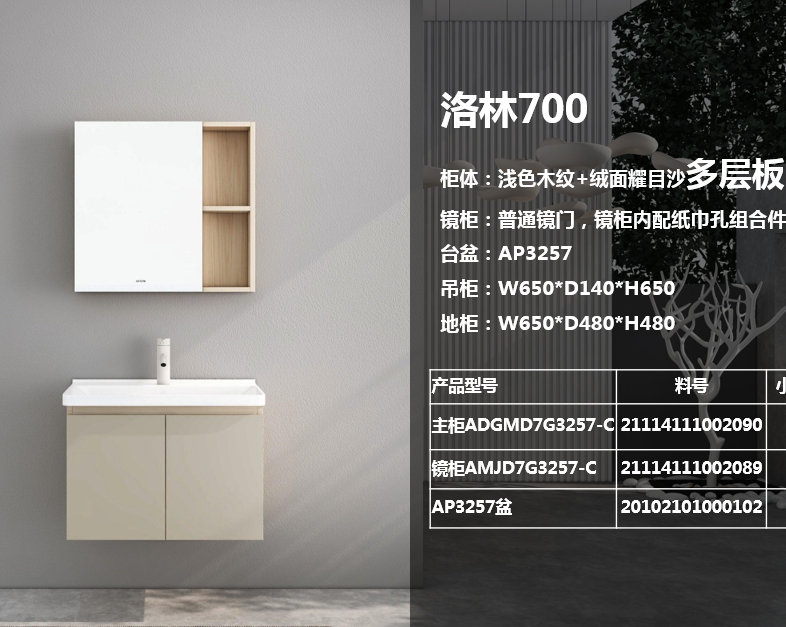 柜盆:700*498*210 主柜:650*480*480 镜柜:650*140*650